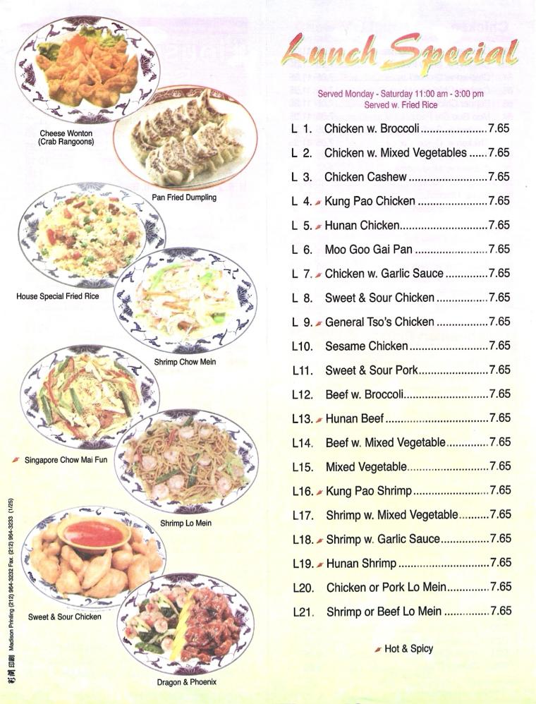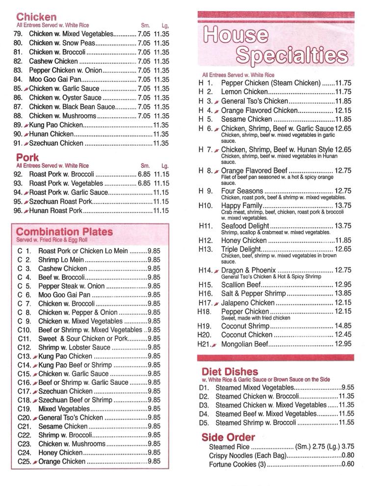 Signature dishes like lo mein and chow mai fun offer diners comforting favorites, while the variety of soups, including egg drop and wonton, showcase flavor with each bowl.